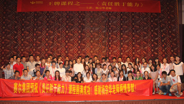 賽爾網訊 8月24日,經過集團人力資源部悉心準備與精心組織,賽爾集團寧波總部和義烏總部共74人,在義烏市東陽海德酒店聆聽了聚成集團商學院院長楊宗華老師題為《責任勝于能力》的管理培訓,其中有28人是集團2011年末和2012年中提干的中層管理人員。