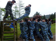 開班前,教練通過了一系列的歡快活動,把全體成員分為五隊(鷹之隊、屠龍隊、步步隊、牛哄哄隊、如意隊),參加了信任背摔、七巧板拼圖、盲人方陣、高空行走、接力傳遞球和凌空擊鼓等活動。經過激烈的比賽,強烈意識到:成功必須鍛煉意志和培養團隊協作的品德情操。如高空行走時每個成員必須膽大心細,敢于挑戰,相互鼓勵,戰勝恐懼;而凌空擊鼓講究的是同心協力,要有團隊協作精神、要有絕對服從的思想、要有顧全大局的理念。