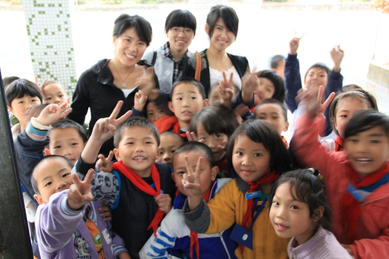 四明山中心小學校長及教師與賽爾人合影留念
