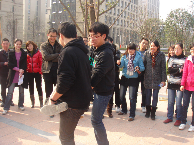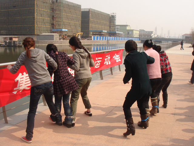 首先開始的是集體項目,第一個項目為三人四足,在裁判員令下,各組運動員卯足了勁往前沖刺,配合得相當默契,短短50米的距離很快就到了,優勝國貿最后以微弱的優勢獲得了該項目的冠軍。第二項螃蟹賽跑,顧名思義就是兩個人夾著球像螃蟹一樣橫著向前奔跑,此項目也是團體接力賽,而高岳進出口的同事們顯現出人高馬大的優勢,很快就領先其他公司的選手,獲得了該項比賽冠軍。團體賽的最后一項是拔河,同事們激情高漲,裁判一聲令下,隊員們使足了勁兒,憋紅了臉,有的甚至被繩子拖著走,依舊不肯放松繩索。旁邊的觀眾和拉拉隊齊聲高喊口號,最后賽爾國貿以強大的實力獲得勝利,整個賽場沉浸在歡樂的海洋中。接下來是有趣的個人比賽了,大家也積極參與其中,雖然最后拿獎的就那么幾個,但是大家還是秉承著參與快樂的精神參加著每一個項目。