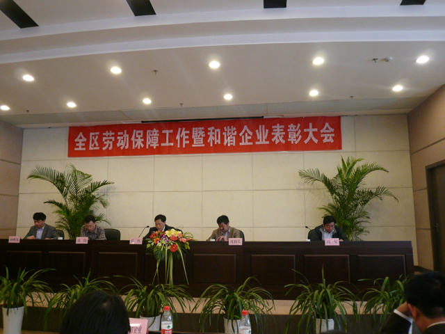 4月29日上午,集團(tuán)人力資源代表參加了在保稅區(qū)創(chuàng)業(yè)大廈召開(kāi)的全區(qū)勞動(dòng)保障工作暨和諧企業(yè)表彰大會(huì)。會(huì)議由保稅區(qū)管委會(huì)徐紅副主任主持,保稅區(qū)管委會(huì)各相關(guān)負(fù)責(zé)人參加了會(huì)議。