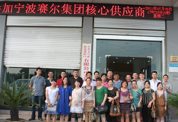 2011年7月5日下午,賽爾集團核心供應商座談會在集團義烏辦賽爾大樓四樓會議室舉行。義烏優訊進出口有限公司總經理錢天鋒,集團常務董事、賽爾國貿業務總監趙軍一起主持會議,各公司義烏辦總監、集團義烏辦樣品室負責人王云及義烏蘇米家居有限公司總經理董劍等15家供應商代表參加了會議。