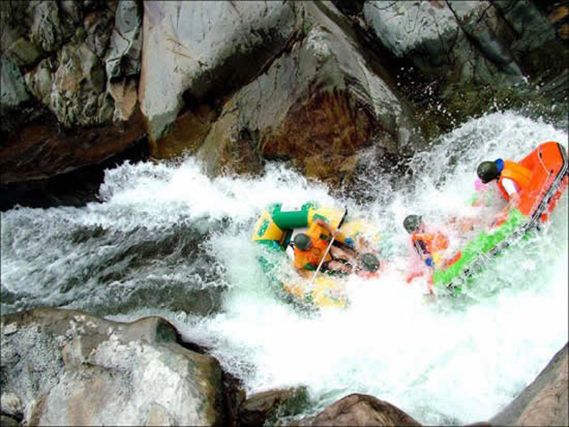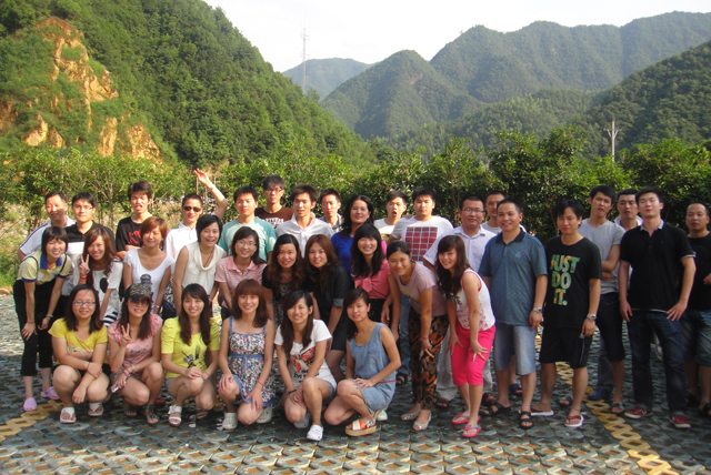 一路上同事們歡聲笑語,到達武義牛頭山時已近晌午,2.5小時的車程早已讓同事們都饑腸轆轆。在享受完牛頭山休閑山莊的農(nóng)家土菜后,車子沿著蜿蜒崎嶇的山路向目的地神牛谷進軍。繞過險峻的地勢,到達目的地時,大家早已迫不及待的換下衣服拿好裝備,想體驗“浙中第一漂”的驚險與刺激。席間,老天的一場突如其來的大暴雨,特別的慰問了我們一直在崗位上兢兢業(yè)業(yè)的賽爾同事們。