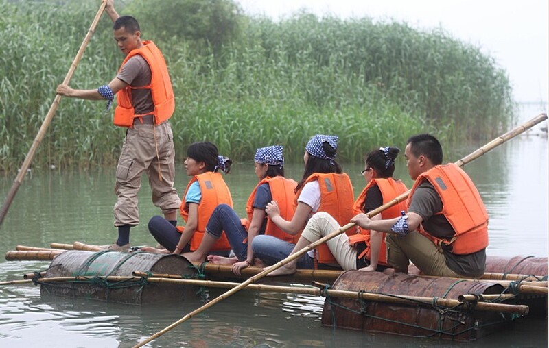 6月1日活動相當豐富精彩。整個公司分成13個小組,完成一系列的尋寶探險活動:瘋狂市場、智力大沖關、扎筏泅渡、懸崖速降等。每個小組成員各自發揮特長,密切配合,充分發揮團隊合作的精神。尤其是扎竹筏特別講究實戰性,竹筏扎得好不好,關系著能不能載著同事順利達到彼岸。聯想到工作也是如此,環環相扣:前期基礎打好,后期單子才能順利進行。途中撐桿同事的握桿水平也非常重要,竹筏哪里偏了需及時調整。就像在處理單子時,需時時刻刻計算各種有可能出現外因,以防導致訂單不能順利完成。最后回到岸邊的時候,有些同事就在上岸時踩空掉落水中,這也說明最后單子的收尾要穩且緊湊。其中懸崖速降活動也可圈可點,很多女同事都自告奮勇,從幾十米高的懸崖上速降下來,果真是巾幗不讓須眉。