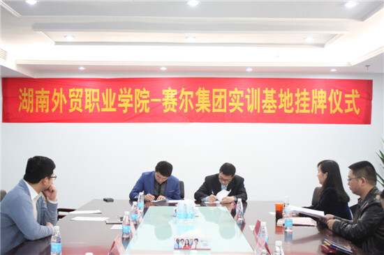 賽爾網訊 4月24日上午,我集團與湖南外貿職業技術學院簽署校企合作協議,舉行校外實訓基地和就業實習基地授牌儀式。學院黨委書記屈孝初、院長唐瑾及相關老師,我集團總裁助理喻進,業務總監陳朝輝、韓科,行政副總監龔江民等,參加了此次簽約儀式。
