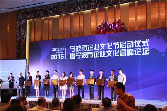 在張明華副市長、陸寧章會長等人共同啟動“2015寧波市企業文化節”后,論壇舉行了頒獎儀式。歐琳集團、市公交總公司、雅迪機車、寧波機場等5家企業入選第三批“寧波市企業文化示范基地”,賽爾集團與寧波交通工程建設、陸龍控股、浙江造船、圍海集團等10家企業共同入選“2014年寧波市企業文化建設先進單位”,我集團主辦的季刊《賽爾志》、華茂集團主辦的《華貿報》、博洋集團主辦的《博洋報》等10份刊物榮獲“2014年寧波十佳企業內刊”。