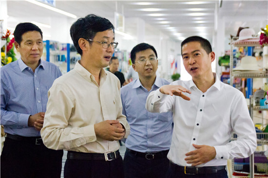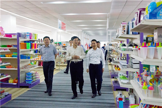 王副市長等首先參觀了我集團產品展示中心。看到如此大空間、多樣化的產品展示廳,王副市長高興地說:“你們這是在自辦廣交會了”。王副市長步入各個系列產品展區,詳細詢問產品種類、供貨來源地、外商類型及采購方式、貨物包裝配送等情況,徐總一一作了解答,王副市長對我集團針對國外連鎖超市客戶著力打造的一站式出口產品采購配送模式表示贊賞。
