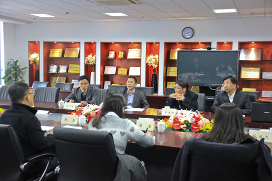 賽爾網訊 2月25日下午,中國輕工工藝品進出口商會張杰副會長、商品二部王穎主任等一行4人在寧波市商務委貿促處費建明處長、毛雙飛老師等陪同下,來我集團調研外貿情況,我集團徐平炬總裁、方永強副總裁、優勝國貿邵紀銀副總經理等熱情接待了來訪領導一行。