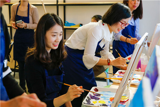 一邊聽著音樂,一邊享用茶歇,一邊創(chuàng)作作品,時很快就過去了。是的,不談工作,不談教學,就是要這么放松。期待2周后我們的陶藝油畫成品。