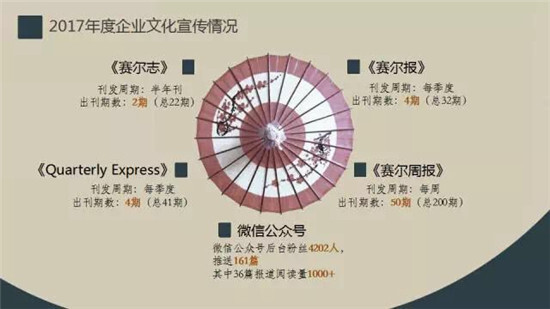 2017年是集團弱冠之年,為獻禮集團創(chuàng)業(yè)20周年,集團企業(yè)文化組重點開展了系列紀念活動的主題策劃和宣傳工作,積極推進自媒體創(chuàng)新。其中創(chuàng)業(yè)20年老照片征集、十年以上老員工征文活動開展后,征集到許多珍貴老照片和多篇飽含深情的長文,引發(fā)了許多感慨與共鳴,也讓新進小伙伴有機會了解賽爾20年的創(chuàng)業(yè)歷史和風采。自媒體創(chuàng)新方面,2017年在貼近業(yè)務一線、嘗試視頻報道、豐富微信風格等方面做了一些創(chuàng)新探索,積累了一些經(jīng)驗。
