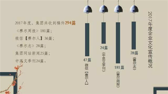 徐總對2017年集團企業(yè)文化宣傳工作成績給予充分肯定(鼓掌),他強調,要做好企業(yè)文化宣傳工作,核心基礎是做好企業(yè)文化建設工作,只講業(yè)務發(fā)展不講文化建設的企業(yè)是干燥、無趣、沒有活力的,企業(yè)文化也是生產(chǎn)力,企業(yè)規(guī)模越大越要重視企業(yè)文化建設。企業(yè)文化建設重在內(nèi)涵提升,它能培養(yǎng)并反映出一個優(yōu)秀企業(yè)的良好氣質,要通過創(chuàng)新性的、體現(xiàn)良好趣味的企業(yè)文化平臺載體和活動策劃,深度挖掘、提煉有價值的文化內(nèi)容,輔之以生動的文化宣傳,吸引賽爾伙伴們參與其中,感受樂趣,增強歸屬感。希望賽爾伙伴們在專心做好業(yè)務的同時,也積極參與企業(yè)文化各項活動,讓賽爾成為有獨特文化魅力和活力的有機企業(yè)。