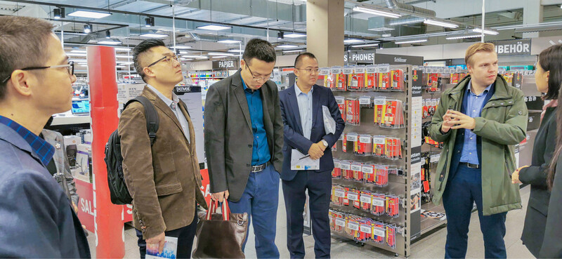 從科隆出發(fā)驅車1小時來到麥德龍總部所在地杜塞爾多夫。麥德龍負責國際事務的市場部經(jīng)理Martin先生接待了游學團一行,帶領大家參觀麥德龍商場,分享麥德龍發(fā)展規(guī)劃、企業(yè)定位、目標客戶和競爭策略,并交流了麥德龍供應商準入與維護等情況。