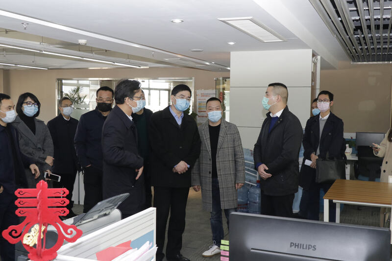 2月12日上午,金華市委書記陳龍在義烏市委書記林毅陪同下來賽爾集團義烏運營中心調研,了解當前企業疫情防控和復工進展等情況。賽爾集團高級合伙人、優騰事業部總經理徐生科,集團財務管理部總監伍淑亞、綜合行政部副總監龔江民等熱情接待了領導一行。
