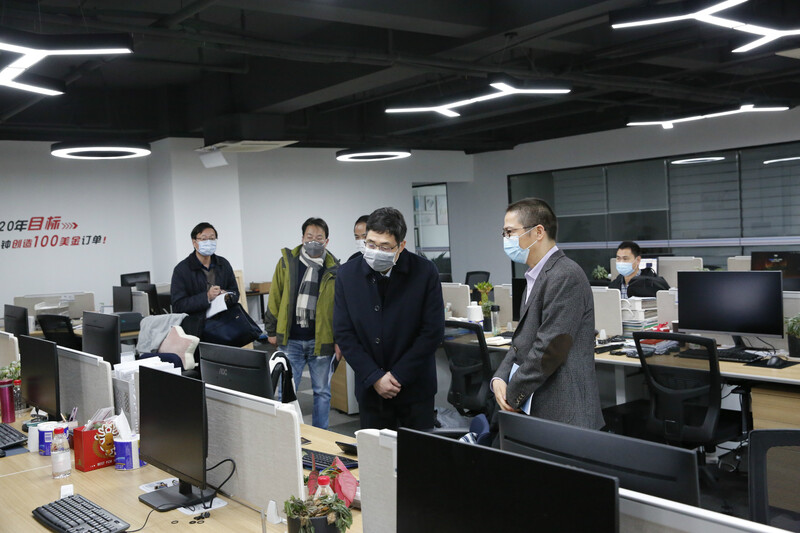 徐宇寧書記一行來到集團優遠事業部辦公區。優遠事業部主要從事跨境電商出口業務,首批復工同事正在工位上忙碌,同時還有幾十雙看不見的手正在家中遠程控制公司電腦,及時處理網店訂單。徐書記一行細致觀看了遠程處理訂單場景,對疫情下積極推行居家辦公方式表示認可。