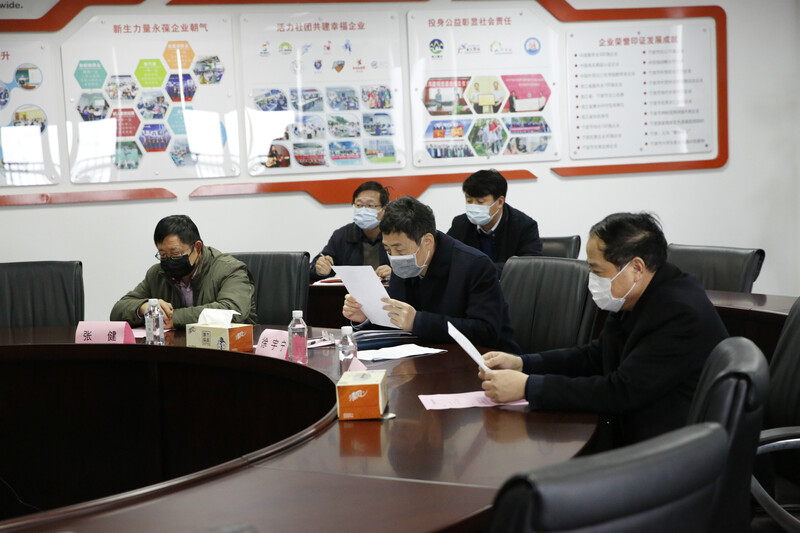 徐宇寧書記一行首先實地查看了集團防疫措施落實情況。徐平炬總裁簡要介紹了一日兩次測溫、兩次環境消殺、應急隔離以及防疫物資分類管理等安排,特別規定每天上午9點11分和下午1點33分各安排一次消殺,希望疫情早日散去。他強調,集團防疫小組對人員和環境的管理嚴格執行“橫向到邊縱向到點,不留死角不漏細節”的要求,確保分批復工能在安全可控的前提下有序推進。