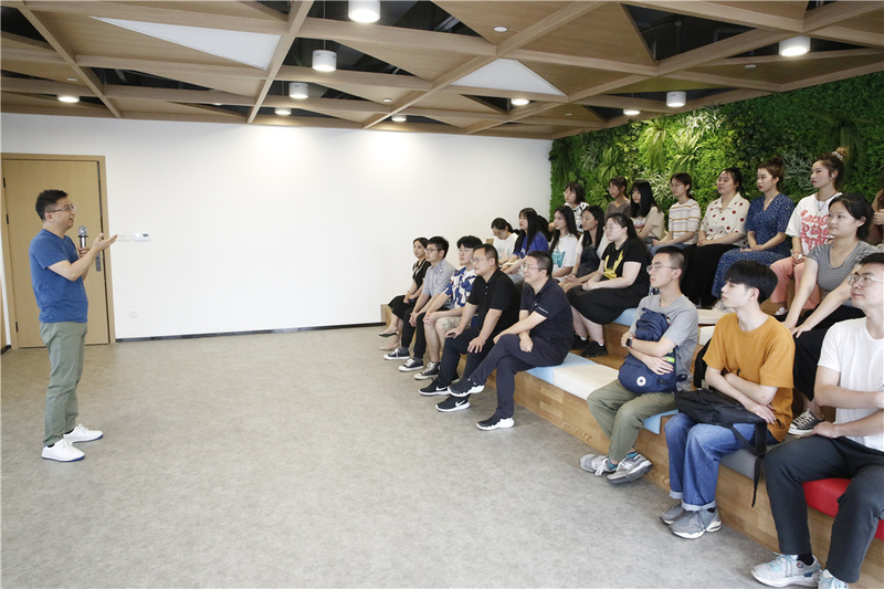 集團副總裁方永強和人力資源部副經理蔣麗妮帶領老師同學參觀了集團文化展廳、樣品展示中心和2樓功能區,向大家介紹了集團發展歷程、業務布局和經營機制,同學們對集團發展和辦公環境表示充分認可。