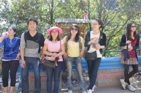 下午一點多,大家酒足飯飽,盡興而歸。圖為在五龍潭景區的出口處合影留念