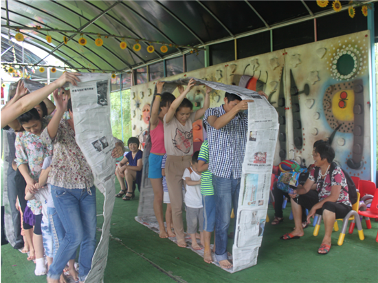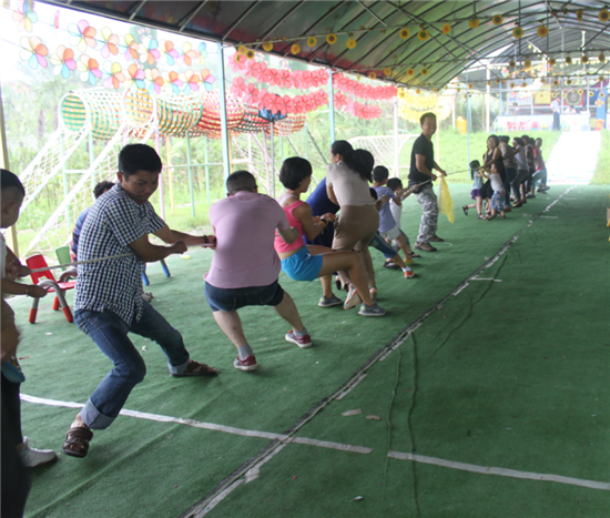 親子拔河比賽,把整個游戲推向高潮,各位辣爸靚媽們帶領自己的孩子使出渾身解數,力圖把對方拉到自己的陣營,三局兩勝,我們的紅隊最后獲勝。