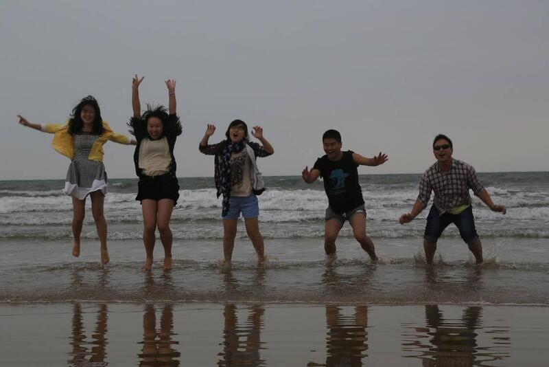 接下來是海濱浴場,脫掉鞋子零距離的接觸大海,感覺太high,瞧這群孩子是不是瘋了?各種雷人的姿勢,各種開懷的笑容!