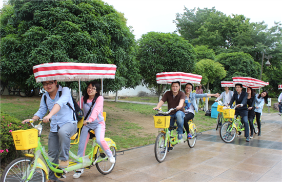 吃飽喝足,就是騎行的快樂時光!休閑,看沿途美景,又鍛煉的身心!快樂的心情都發自肺腑地寫在了臉上,看,我們美麗的謝總,笑得如此燦爛!