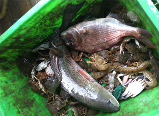 好新鮮的海魚、螃蟹、小蝦,活蹦亂跳的。