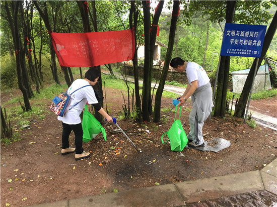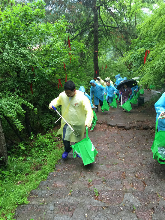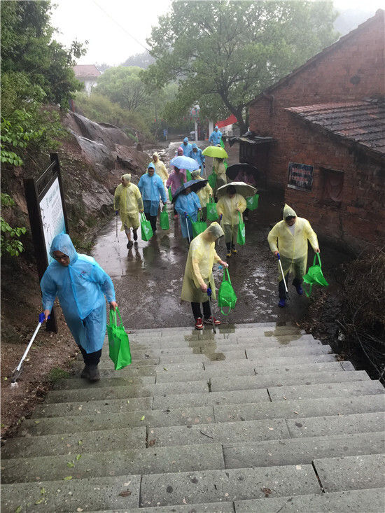 等我們到了半山腰,雨開始停了,大家脫下雨衣后心情就更加暢快了。身邊不斷有爬山的游玩者經(jīng)過,紛紛對(duì)我們這種行為點(diǎn)贊,并表示下次也要邊清理垃圾邊享受爬山樂趣,增添游玩的意義。
