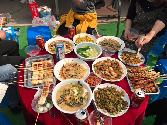 新鮮的食材,齊全的燒烤配料,充沛的零食酒水,無不體現(xiàn)采購男神們的貼心、周到。看他們認(rèn)真洗菜的樣子,精湛的刀工,生火烹飪時的協(xié)調(diào)配合,讓圍觀的女人們更是贊不絕口。快看這邊烤肉串的帥哥,再看那邊大廚范兒十足的美男,就連專業(yè)生火20年的師傅都面容俊美。
