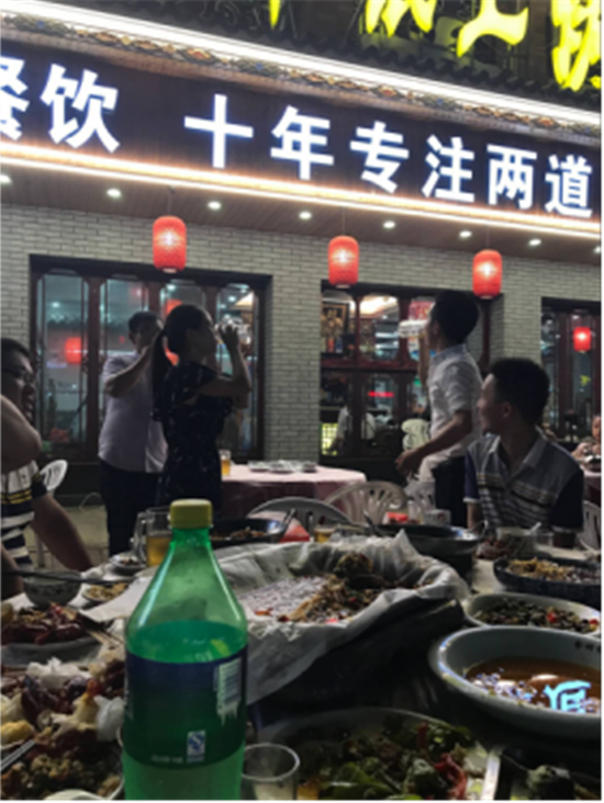 夜市街邊的大排檔燈火明亮,各色菜肴擺了滿滿一桌,烤魚、牛蛙、干鍋、龍蝦……應有盡有!別看大家平時都是淑女,Gentleman,在美食面前,一個個都顧不上形象,嘴下毫不留情。不過似乎這種狼吞虎咽、大快朵頤、無所顧忌的樣子和大排檔更配!沒錯,吃得爽快,那是對人生最起碼的尊敬。冰爽的扎啤,算是大排檔的黃金搭檔沒有之一,幾杯下去,男同學們明顯嗨了起來,你敬我一杯,我還你兩杯,根本停不下來。幾個機智的軟妹紙,端起杯中82年的雪碧、可樂,霸氣地和采購男神們拼起“酒”來。