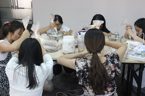 8月28日是中國傳統節日——七夕節,賽爾學院特別推出七夕特輯《愛の木糠杯》,由寧波丁潔瓊和義烏田丹丹兩位多才多藝的講師為大家開課。她們早早地就準備好了木糠杯的食材:消化餅、奧利奧餅干、藍風車奶油、搟面杖、電動打蛋器、裱花袋……這是賽爾學院第一次開設純手工的課程,準備的東西雖多,但絲毫不影響兩位講師的積極性。