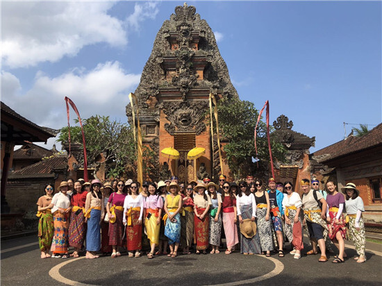 6月15日,全團一行40余人,從蕭山飛行六小時,于凌晨抵達巴厘島機場,走出機場大門就收到當地人送的雞蛋花項圈,芬芳撲鼻,化解了我們一路的疲憊。