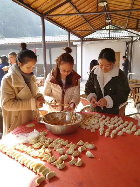 周日,小伙伴們早早地起床,去買了菜,水果零食等等,然后便前往山莊,開始準備豐盛的早餐。一般打開方式是男生們負責生火洗菜,而我們就是要反著來,全是男生掌廚,女生們打下手。這次的掌勺是車隊的小彬哥,他的拿手菜紅燒肉和紅燒魚塊讓人吃過就會想念。女生們也不示弱,包起了花樣餃子,有義烏大餛飩、大餃子、福建蒸餃、麗水花式蒸餃等等。大人們都在忙活著,而我們的小朋友也一點都不空,也在忙活著“交朋友”。