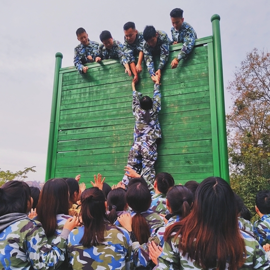 第二天,同樣是幾個小游戲,也帶給了我們很多啟示。拓展的最后一個項目是翻逃生墻,這也是兩天拓展中讓人最感動的項目。4米多的墻,靠個人力量是不可能翻上去的,唯一的辦法就是搭人梯。男生們主動上前充當人體肉墊,教官指導調整,后面越來越默契,僅用了19分鐘,所有人得到解救。看到下面充當肉墊的勇士們面部猙獰的表情,女生們也情不自禁地鼓掌。整個項目在“賽爾,加油”的吶喊中結束了。這個項目告訴我們,人還要學會感恩!感恩給予幫助和提攜我們的人,每個人的成功除了自身的勤奮和努力外,最大得益于來自周圍的親人、朋友以及同事的幫助。