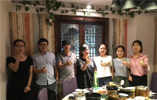 周五忙完工作后,大家步行到了聚餐點。伴隨著一些閑話家常,大家享用著美食,也很享受這份忙碌之余的閑暇時光,義烏的同事也在部門群里曬出了他們的聚餐合照,紅彤彤的川菜實在誘人!同事們相約下次去義烏再相聚。汕頭的同事小詹周末還要陪客戶,大家也向他表達了中秋的祝福。