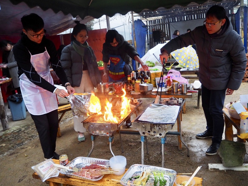 還未達到目的地,大家就迅速成立了“廚房真功夫組”、“BBQ組”、“手工餃子組”、“水果組”,摩拳擦掌,躍躍欲試,準備在戰(zhàn)場上開辟新天地。由張旭東、盧堂翠帶領(lǐng)的“廚房真功夫組”全都是廚藝了得的大廚,做出了姜汁皮蛋、白切雞、清蒸鱸魚、土豆燉牛肉等一道道色香味俱全的美味佳肴。每出一道菜,大家都蜂擁而上,一掃而光。由劉珊帶領(lǐng)的“BBQ組”都是燒烤達人,只要高喊一聲“烤好了”,覓食的人群們就會聞聲而來;“手工餃子組”出鍋后的香味讓人垂涎欲滴;“水果組”的手藝無比驚艷,有千禧果制作的兔子,有哈密瓜自成一體的水果拼盤。還有花費了近三個小時的烤全羊作為壓軸隆重登場,在即將出爐的那一刻烤全羊周圍圍滿了人群,共同等待品嘗美食。