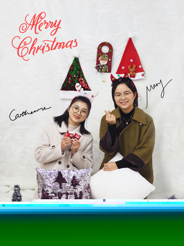 我們利用圣誕花環(huán)、圣誕樹、圣誕襪、圣誕擺件等各類節(jié)日裝飾品,以白色絨布為背景,打造了一個溫暖喜慶的布景。隨后按照公司各個小組的順序,以重要客戶為對象,進行不同的序列組合拍攝團體照。另外,我們還收集了每一位業(yè)務員的英文電子簽名,標注在每個人照片旁邊,以便給客戶留下更深刻的印象。拍完照之后,我們在上面加上了祝福語和親筆電子簽名,最后制作出了一張張別出心裁的精美圣誕節(jié)專屬賀卡。