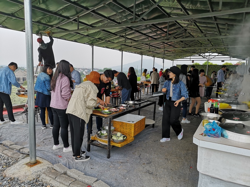 早上8點半,大家在公司集合并乘大巴前往武義桂族灣。經(jīng)過2個小時的車程,終于抵達目的地。一下車大部隊就在場地負責人的帶領下前往土灶。按照提前分好的小組,大家分頭開始準備午餐。為了讓同事們嘗到自己的拿手好菜,每個人在此刻都化身成了中華小當家。由于一些大神的菜品過于優(yōu)秀,一出鍋就遭到哄搶,原本設計的猜菜名環(huán)節(jié)也被省略了。