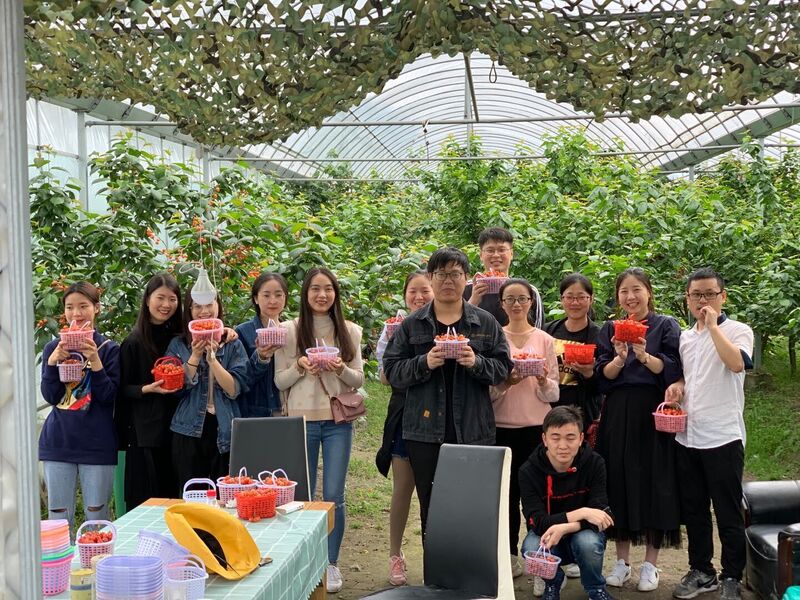 早上出發之前還下著毛毛細雨,但絲毫不影響我們采摘的心情。到了目的地,每個人在入口處領完籃子后進入了櫻桃園。此時正是小櫻桃收獲的季節,走進櫻桃園可以看到一顆顆樹上掛滿了一串串鮮紅的“小燈籠”,猶如瑪瑙般晶瑩剔透。輕輕咬一口,清甜的汁水流露出來,甜中略帶點酸,十分可口。櫻桃還沒長開的顏色是青色的,漸漸變成了淡紅、大紅,就像一張張嫩嫩的小紅臉蛋,一碰就破,非常惹人喜愛。過了許久,大家吃飽了,也摘累了,便帶著滿滿的成果先后鉆出果園。這次采摘大賽不僅讓我們體驗了采摘的快樂,還能帶上新鮮的櫻桃去和家人一起去品嘗酸酸甜甜的味道!