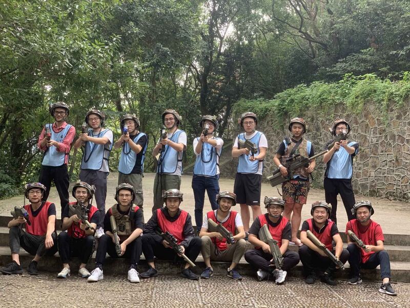 當天早上9:30,采購部的16位勇士們就已經精神抖擻地在東錢湖的真人CS戰場上整裝待發。在教練的指導下,8V8的小團隊攻防戰正式拉開序幕。正所謂一槍在手,天下我有,每一個小伙伴們都跟打了雞血似的,有匍匐前進的,有快速沖鋒的,有躲在碉堡里放冷槍的,你來我往,激烈的槍戰聲音和被擊中的頭盔發出的慘叫聲此起彼伏,現場極度火熱。