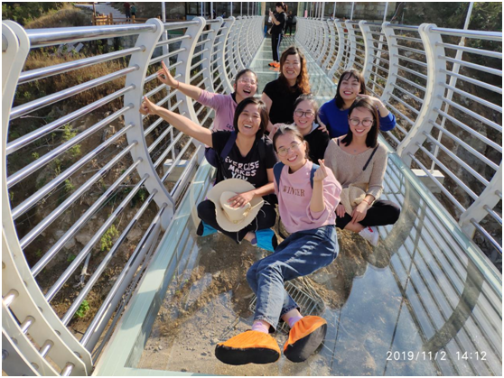 這一天,天氣非常給力,艷陽高照又夾雜著絲絲秋風,大家輕裝上陣相約于義烏赤岸西海龍山風景區。走一走讓人雙腿發抖的玻璃棧道,蕩一蕩令人毛骨悚然的高空秋千,擺一擺美美的POSE,拍一拍沿途的風景,一個下午好不愜意呀!