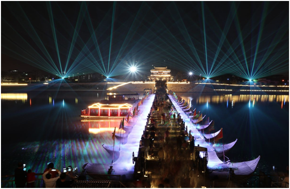 晚飯過后,我們轉戰去了義烏佛堂古鎮。正值佛堂一年一度的十月十民俗文化節,佛堂老街熱鬧非凡,人流穿梭不息,老街上賣的各種小玩意兒、小擺件也讓人不由自主地懷念起童年的快樂時光。江邊燈火通明,人頭攢動,大家都在欣賞浮橋上的3D燈光秀,流光溢彩,美不勝收。