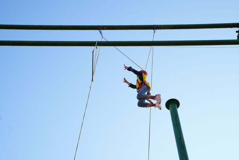 早晨,一聲激昂的哨聲響起,賽爾新人在總教練的指揮下迅速分成6個(gè)戰(zhàn)隊(duì)。一二!一二!一句句振人心弦的齊聲吶喊;咚咚!咚咚!一聲聲響徹土樓的球體撞擊,我們第一個(gè)項(xiàng)目——“鼓動(dòng)人心”開始了。我們在一次次失敗中總結(jié)自身調(diào)整策略,在一次次彎腰撿球中站直身體擺正位置。隨后開始的驚險(xiǎn)倒計(jì)時(shí)則考驗(yàn)了我們的流程管理能力和快速協(xié)調(diào)能力。第三個(gè)項(xiàng)目是高空抓桿,大家一開始雖然都有些害怕,但最后所有成員都爬上了高柱,無人退縮,這對于一個(gè)大團(tuán)隊(duì)來說,是一個(gè)多么值得欽佩的成果! 接下去的極速60秒要求每個(gè)隊(duì)伍必須在60秒內(nèi)破解一個(gè)繩圈內(nèi)的30張神秘卡牌,且繩圈內(nèi)只能有一人來觸摸卡牌及繩子,團(tuán)隊(duì)成員只能在圈外幫助圈內(nèi)成員。直到比賽結(jié)束時(shí),教練告訴我們原來規(guī)則是可以打破的,圈內(nèi)成員可以把繩子扯掉,這讓我們意識到突破界限和不墨守成規(guī)有多么的重要。第一天的最后一個(gè)項(xiàng)目是用拼接墊來搭建高塔。大家瘋狂地堆高度,但是忘記了建筑材質(zhì)和場地風(fēng)力,這個(gè)項(xiàng)目讓我們明白了有時(shí)候地基和結(jié)構(gòu)才是成功的關(guān)鍵,一味追求高度和速度只會(huì)潰敗涂地。