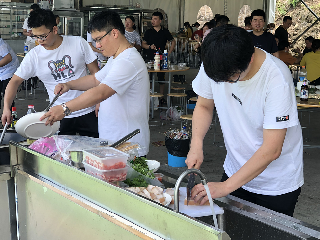 上午10點,大家一同驅車前往這次的目的地——曹村花間樂園。取完票后,我們拎著食材直奔花間燒烤場。為了能夠吃上一頓豐盛的午飯,大家各自分工,女生們負責擇菜洗菜,清理廚具,男生們則紛紛化身為大廚,各顯身手,一展廚藝。一盤盤色香味俱全的菜肴陸續出鍋,大家邊烤邊吃,甚是愜意。吃飽喝足以后,大家開始自由活動。有的湊在一起玩紙牌游戲,有的選擇在樂園里嘗試各種娛樂項目,度過了一下午的歡樂時光。