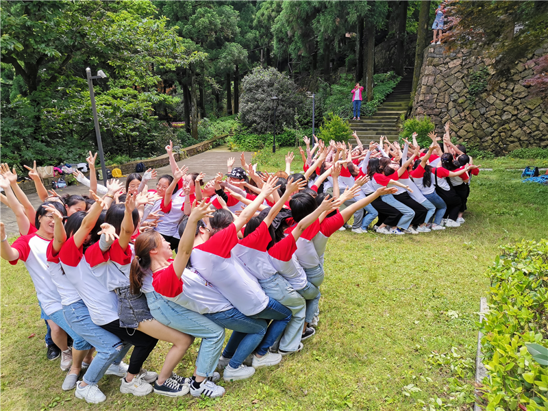 第二天又是陽光明媚的大好天氣,大家分坐四輛景車進入莫干山景區,下車后,一股清涼感瞬間包裹全身。這里風景甚美,竹林綠蔭,激流瀑布,再加上清末民初興建的數百幢別墅掩映其間,非常清幽,不愧是出名的避暑勝地和純天然氧吧。大家拾階而下,聽著干將莫邪的故事,瀏覽了劍池、皇后飯店、毛主席下榻處、武陵村、蔣介石夫婦蜜月地等景點。之后,我們品嘗了特色的午飯,玩了小游戲,見了一些常常聯系的“網友”,增進了友誼和團隊凝聚力,也跳了《一起學貓叫》的舞蹈,莫干山之旅就在歡樂中落下帷幕。
