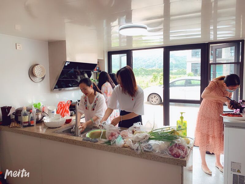 一大早四位工作人員便先行前往當地菜市場選購火鍋食材,剩余人員也隨后陸續出發前往目的地。全員到齊后,大家便開始進行準備工作,刷盤、洗菜、切菜,大家各司其職,當然也不乏平常在家不干家務活的“勞動人民”制造了點小插曲,氣氛十分歡快。