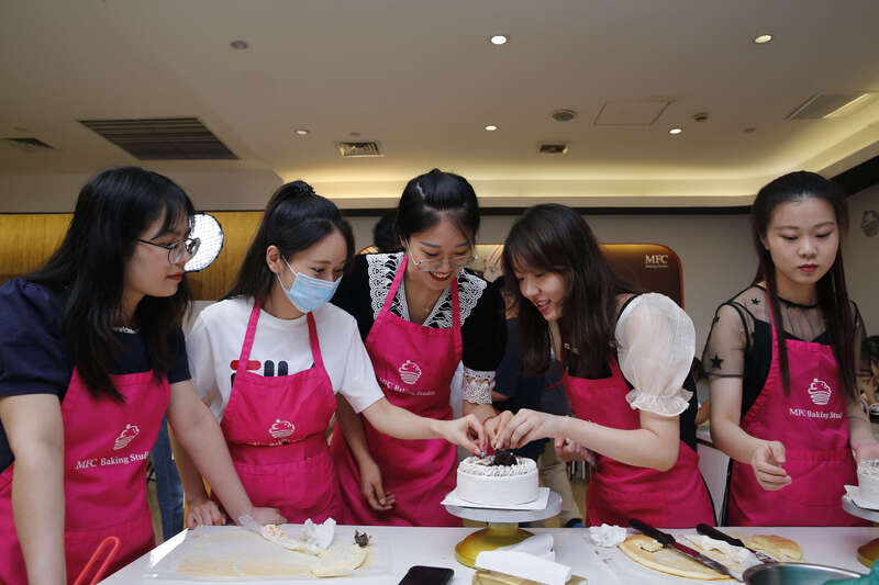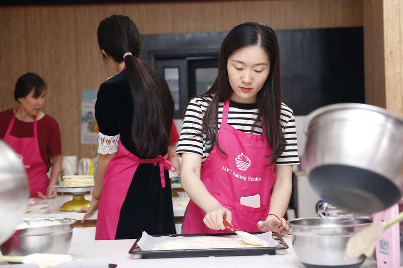 我們在老師的指導(dǎo)下專注地制作起了屬于自己的小蛋糕,這其中有從未下過廚房、只擅長吃的烘焙新手,也有深藏不露、動作頗為嫻熟的烘焙大師,一番忙活后終于將蓬松軟綿的蛋糕胚制作完成。