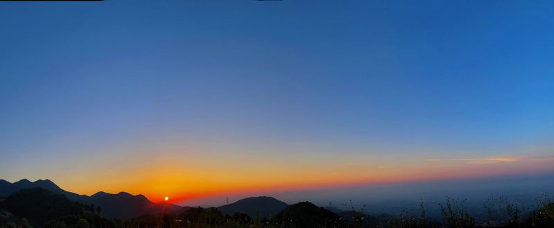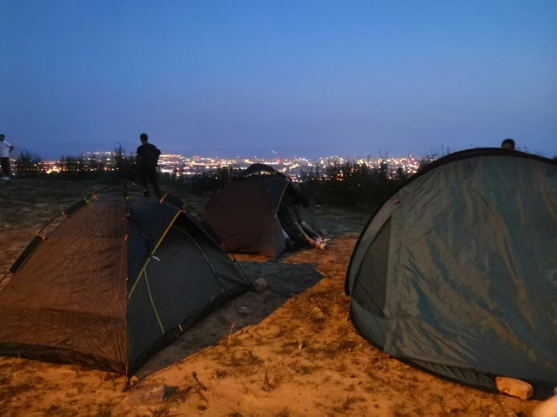 隨后, 我們出發前往第二站——金華山。到達目的地后,我們在視野寬廣、地面平坦的地方準備安營扎寨。趁著傍晚的夕陽還沒有完全落下,大家決定去大山中散步溜彎,我們邊走邊欣賞沿途的景色,時間仿佛在此刻靜止。夕陽西下,夜色悄然而至,DB小組團隊協作搭完帳篷后,拿出零食水果瓜子,開始看星星,談人生,聊理想。隨后,大家在大帳篷中玩起了真心話大冒險。