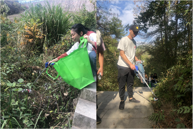 上山容易下山難,前山陡峭,有的臺階只能站立半個腳掌,大家一鼓作氣,提著滿滿的垃圾布袋抵達山腳。終于到了用餐時間,不知道是爬山累了,還是老板廚藝高超,每桌都吃得開心滿足。