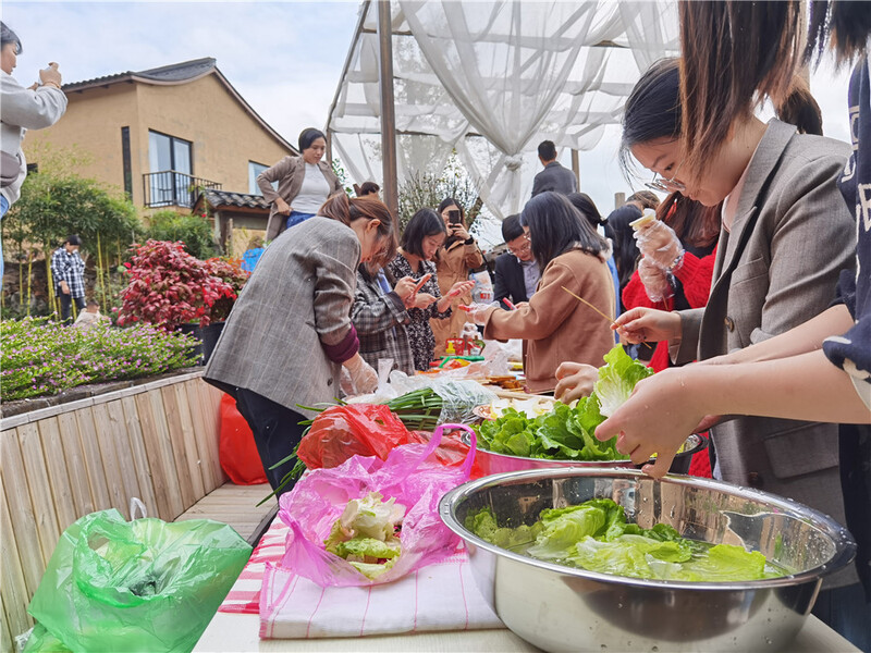 一入深山,壯麗秀美的自然風景映入眼簾。稍作休整后,我們便開始了今日重頭戲——燒烤。洗菜、擇菜、穿串兒、生火、燒烤,大家一邊干著活兒,一邊品嘗著美食。期間,大家一起聊天做游戲,可真是美哉樂哉。