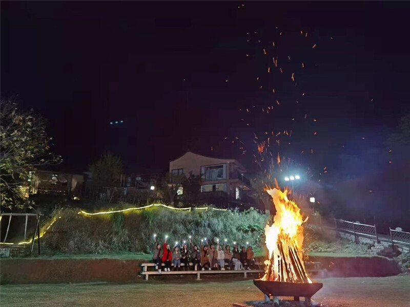 晚飯后,小伙伴們在漫天的星空下圍繞火堆唱歌跳舞,堆簇而立的火光將每個人的笑臉都映照得更加明亮。古村的夜晚,安逸又溫暖。