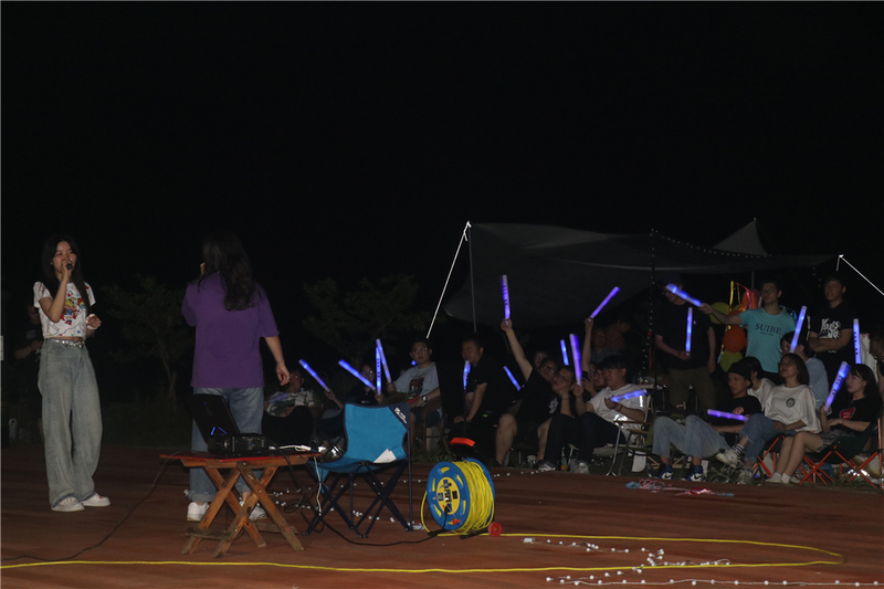 酒足飯飽后,“追光吧!貔貅!”音樂節由一場美麗的煙花秀作為開場,臺上各組的麥霸與歌神互相較量,你方唱罷我方登場,神仙打架。臺下的人化身為小粉絲,跟著音樂節奏互相揮舞著應援棒,享受著音樂帶來的狂歡之夜。